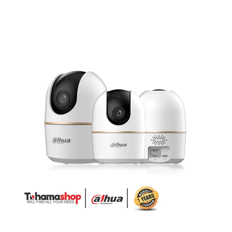 DH-H4A 4MP Indoor Fixed-focal Wi-Fi Pan & Tilt Network Camera Sensor: 1/3" CMOS Resolution (4MP) Night Vision: Up to 10 meters (IR) Pan & Tilt Angle: Pan: 0° - 355° - Tilt: -5° - 80° Lens: F2.0 Field of View: Horizontal: 74° - Vertical: 41° - Diagonal: 88° Intelligence: Human Detection, Motion Tracking, WDR (DWDR) Video Compression: H.265, 2880×1620 up to 30fps Audio: Built-in MIC and Speaker, Two-way Audio Support Network: Wi-Fi 2.4GHz, RJ-45, DMSS App Storage: Micro SD card up to 256GB Power: 5V DC, Power Consumption: 1.9W (Basic), 4W (Max) Temperature Range: -10° to +45°C Material: Plastic, Dimensions: 77.8 × 108.1 mm, Weight: 195g